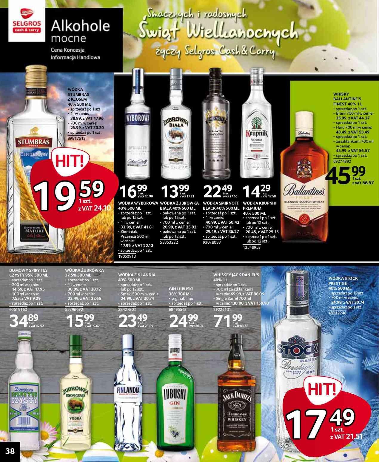 Ballantine's whisky, Jack Daniel's whisky, Wyborowa wódka, Krupnik wódka, Żubrówka wódka, Finlandia wódka, Stock wódka, Lubuski gin