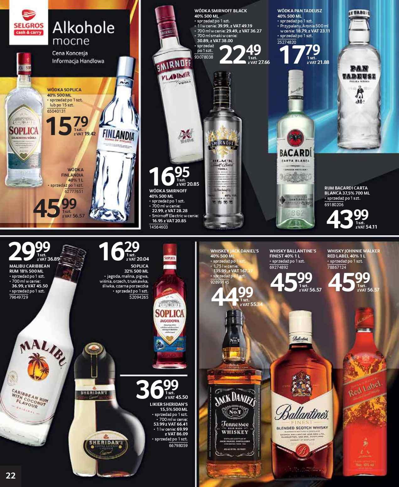 Soplica wódka, Finlandia wódka, Smirnoff wódka, Pan Tadeusz wódka, Malibu, Sheridan's likier, Jack Daniel's whisky, Ballantine's whisky, Johnnie Walker whisky