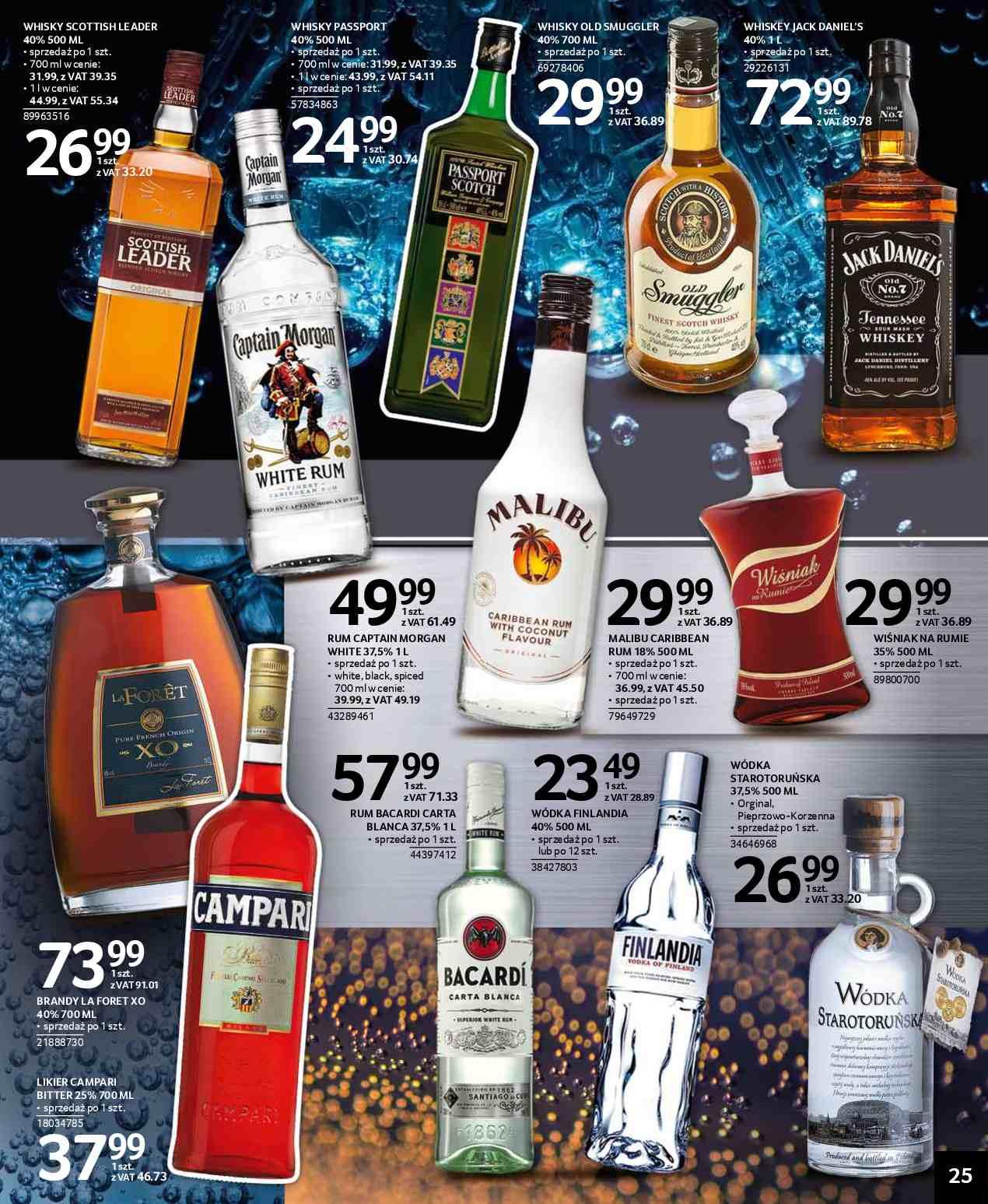 Finlandia wódka, Captain Morgan rum, Passport Scotch whisky, Old Smuggler whisky, Jack Daniel's whisky, Malibu, Bacardi rum