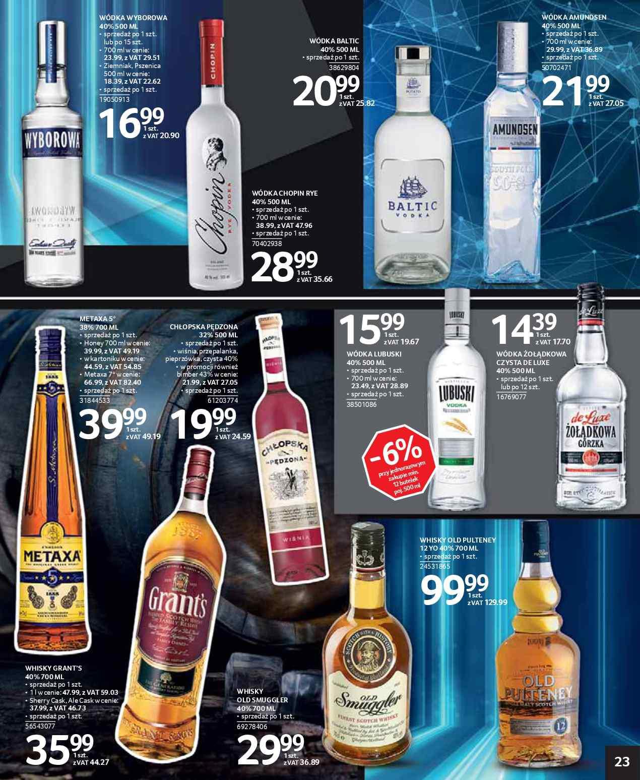 Grant's whisky, Old Smuggler whisky, Metaxa brandy, Wyborowa wódka, Amundsen wódka, Żołądkowa Gorzka wódka, Chopin wódka